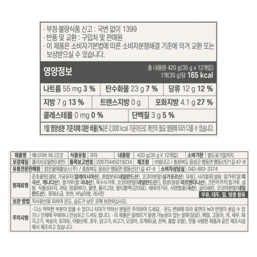 • 힘내고 에너지바 허니코코 420g(35gx12개입)